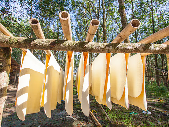 ผลิตภัณฑ์หลักของเราได้แก่ ยางแผ่นรมควันชั้น 3 และชั้น 5 ซึ่งเป็นวัตถุดิบในการผลิตสินค้าหลายประเภทเช่น ยางรถยนต์ พื้นรองเท้า และ ชิ้นส่วนประกอบรถยนต์ต่างๆ เนื่องจากคุณสมบัติที่มีความยืดหยุ่นดีนั่นเอง การคัดสรรค์คุณภายของยางแผ่รมควันนั้นเน้นไปที่ความสะอาดของแผ่นยางซึ่งตรวจสอบโดยสายตา โดยยางแผ่นรมควันชั้น 1 จะมีความสะอาดมากที่สุด ไปจนถึงยางแผ่นรมควันชั้น 5
